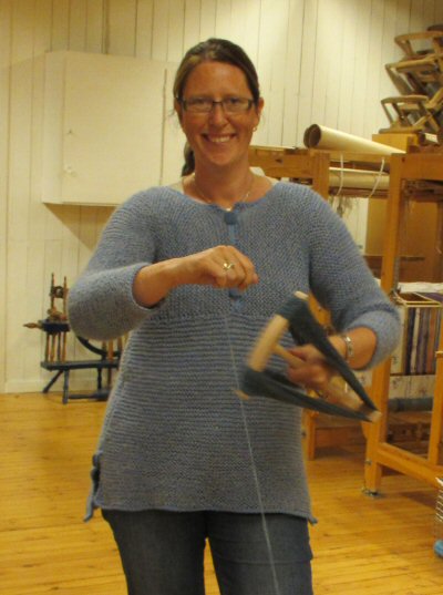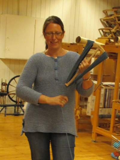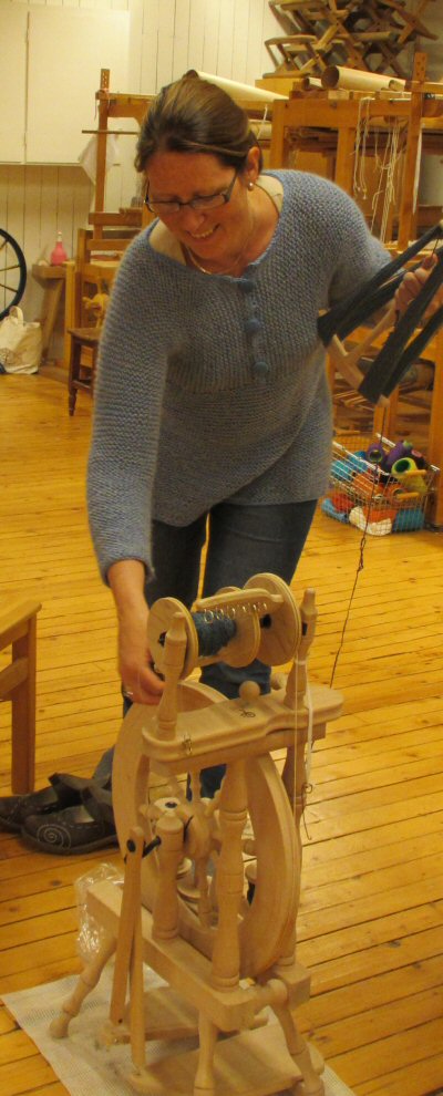 Bildene har søte Sissel tatt på siste spinnetreffet i år. Vi treffes nemlig en gang i måneden på Larvik Husflidslag og spinner og prater. Akkurat sist var jeg ferdig med en spole tvunnet garn så jeg holder på å hespe det opp.