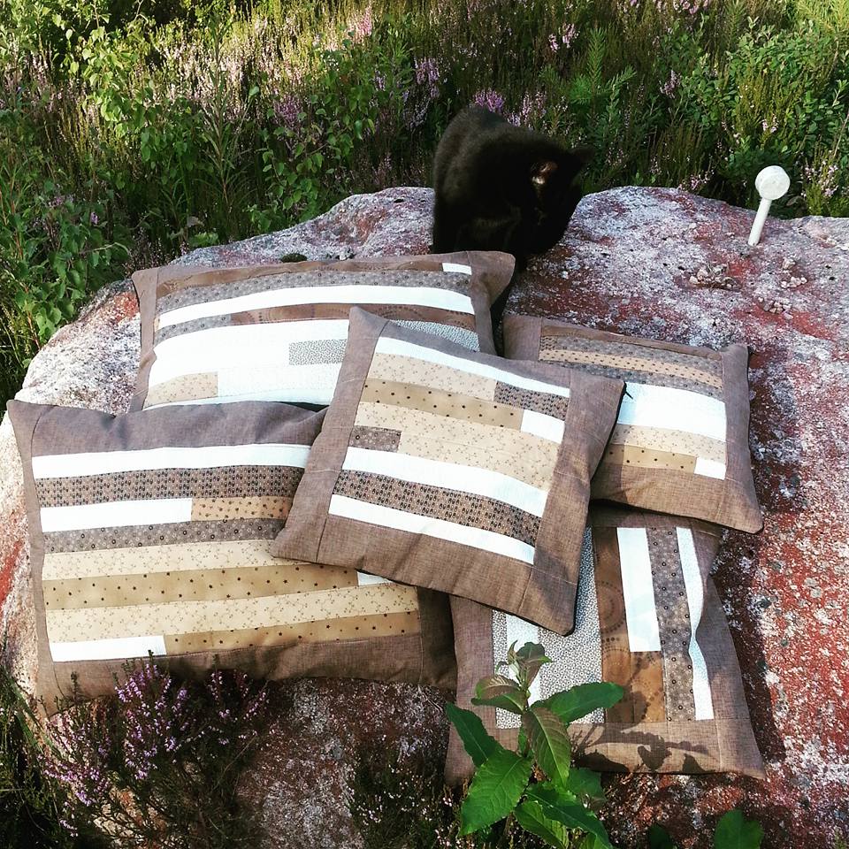 Og dette syntes jeg også var en god ide! Så denne gangen fikk jeg brukt opp alle stoffene, alle restene sydde jeg puter av og det eneste jeg trengte å kjøpe da var den brune kanten rundt.