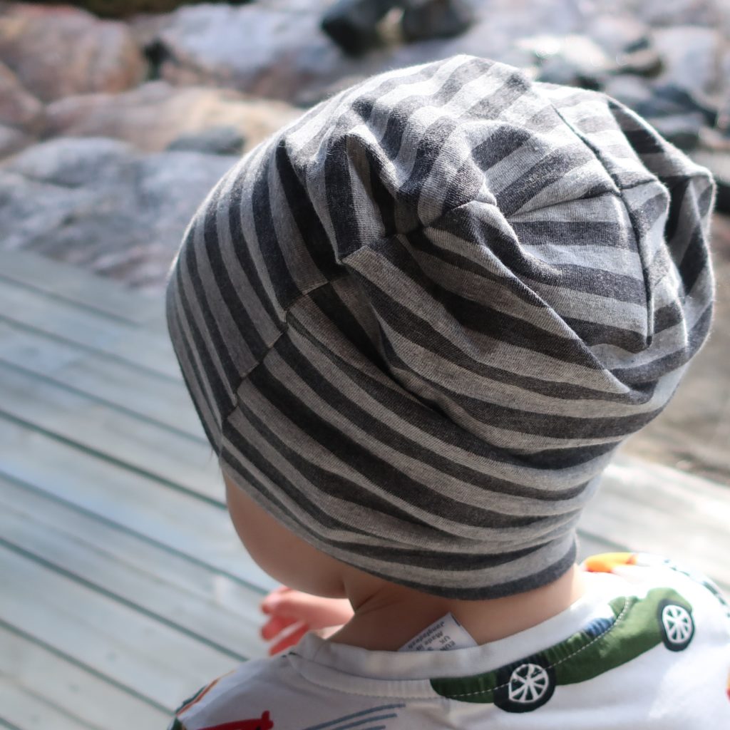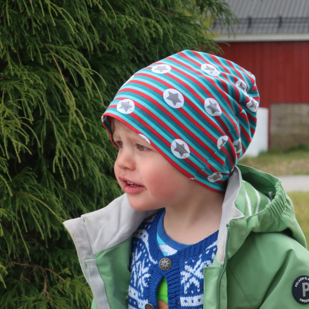 Mønsteret Topplue er et fint og romslig grunnmønster på lue i størrelse fra 40-62 cm. Altså fra ca 3 mnd til stor herrestørrelse. Luen er litt baggy, og det kan du også justere selv som du vil. Avhengig av om du vil sy enkel eller dobbel lue, må du variere stoff-forbruket. Det er viktig at du velger riktig størrelse!
